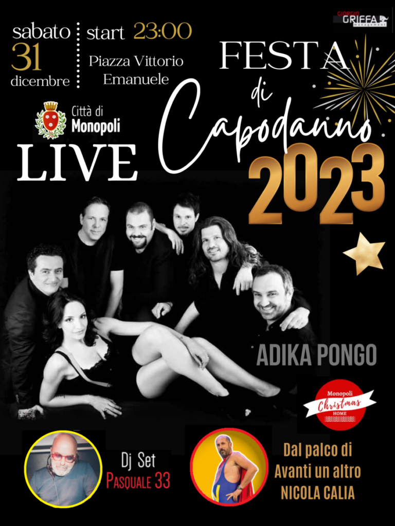 Con il borgo illuminato a festa con il grande albero di Natale, la pista di pattinaggio sul ghiaccio e il Castello di Babbo Natale, nella notte più festosa dell’anno, la Città di Monopoli darà il benvenuto al nuovo anno con la musica degli Adika Pongo, il dj set di Pasquale 33 e l’animazione di Nicola Calia.