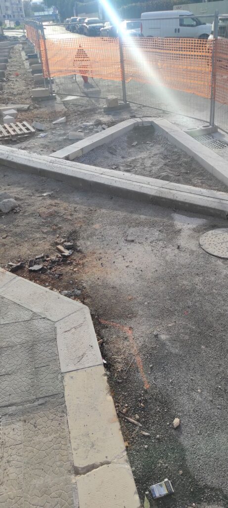 In pratica, si desume in grandi linee, che su quella strada dovrebbe esserci uno stretto marciapiede pare costeggiato da un tratto di pista ciclabile senza né capo né coda. Inoltre di fianco al tratto di pista ciclabile, poi, verso il centro della careggiata, sono stati allocati altri manufatti in cemento a forma di triangolo con due triangoli molto più grandi posti uno a nord ed uno a sud.