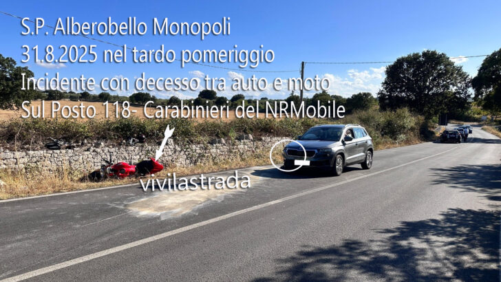 Un grave incidente stradale è costato la vita, nel pomeriggio di domenica 31 agosto, ad Alberto Roma, 31 anni, originario di Ostuni. Il giovane, in sella alla sua moto, avrebbe perso il controllo del mezzo andando a scontrarsi con una Skoda Karoq che procedeva in direzione opposta. L’impatto è stato violentissimo e purtroppo fatale.